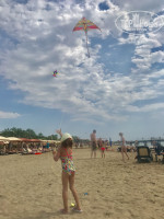 Море. Песчаный протяжённый , много лежаков. Приходили в любое время- находили. Не три рядом. Но один обязательно, и не в последнем ряду. Отдельные большие зонтики, можно расположить лежак как удобно относительно солнца. Заход в воду вроде как удобный, но поближе к «поколено» начинается узкая, но неприятная полоса камней. Переживаемо, если не шторм и нет ребенка на руках. Лёгкий массаж . Прозрачность относительная у берега, дальше прозрачнее. Три отдельных пантона на расстоянии метров 50 от берега. Доплыли- лежим загораем, покачиваемся. Закономерно утром штиль, после обеда штормит. Water sport - все классически , подходим , плаваем , летаем и тд.
