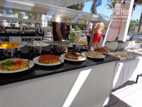 В баре на пляже чай, кофе, напитки и коктейли. Днём мороженое, сервируется обед и полдник. Попали там на празднование «октоберфест» , как в Германии. (см фото)