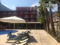 Отдыхали семьей, отель был полон и хотя мы сразу покупали номер стандарт, по приезду мы ночевали в эконом, на первом этаже. Отель не большой 4 этажа, есть бассейн, но там мелко, он для детей. На следующий день нас пересили в номер стандарт на 4 этаж, номер с видом на горы. Вид шикарный👍. Сам номер был чистый, но видно что старенький, душ протекает, душевая кабина не закрывается, мебель в номере старенькая, также как и постельное белье, полотенца. Через дорогу от отеля находится пляж. Пляж общий для отелей и жителей поселка. Полотенце для пляжа нужно брать на ресепшене(бесплатно). На пляже лежаки потрепанные и поломанные, пляж крупная галька, за то вода в море чистейшая, прозрачная и теплая. Wi-fi в отеле платно 10$ на человека, работает плохо. Лучше подключиться в кафе у пляжа и пользоваться интернетом там, wi-fi в кафе бесплатно при покупке напитков или еды). Еда в отеле хорошая, всегда найдется что-то по душе: овощи, супы, салаты, картошка, рыба, курица,нагетсы, рис, макароны, утром оладья или яишенка. Из напитков кофе, чай, газировка на баре. Алкоголь ужасный.... пиво кислое, вино не вкусное.