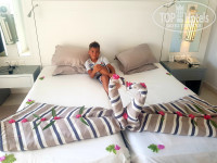 Перелет был авиакомпанией НорВинд. В полете не кормят дают только воду. Мы об этом знали и брали с собой перекусить. По прилету довольно оперативно прошли таможню и получили багаж. До отеля добирались минут 40. Так как приехали в районе 17 часов заселили сразу. Всех русских селят в одно крыло. Нам достался номер на 2 этаже 3202( многих селили на первый этаж, думаю нам помогло сопроводительное письмо от топхотелс, которое я предьявила при заселении). Номер просторный, чистый уютный. Все работало, все необходимое есть. кондиционер, телевизор, мини-холодильник, фен. В номере убирались ежедневно, причем в районе 10 часов утра, что очень удобно. Процентов 80 отдыхающих - французы. На русском языке, кроме элементарных фраз - не говорят)) По английски - понимают)