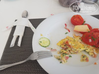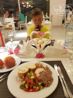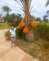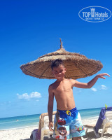 Питание - голодным точно не останешься. Курица, индейка, говядина, свинина, баранина, рыба, пару раз были мидии, крабы, креветки. Очень вкусная выпечка. Выбор овощей не такой конечно как в Турции но всего хватало. Из фруктов были вкусные персики, сливы, дыня, яблоки, груши, виноград. Завтрак и ужин проходят в главном ресторане, обед - на территории недалеко от бассейна и на пляже. Официанты очень внимательные, не заметила(судя по некоторым отзывам) негативного отношения к русским, иногда оставляли чаевые около 5 динар и нас всегда ждал накрытый для нас стол с напитками которые мы предпочитаем. Очень понравилось красное вино - рекомендую. Обедали в основном на пляже , выбор конечно не так велик как на территории возле бассейна, но вид шикарный. Территория - красивая зеленая ухоженная, но за территорией абсолютно некуда сходить( если только ехать на такси). Если выйти из отеля, повернуть направо и пройти минут 10 есть пара магазинчиков, где можно без проблем купить подарки и сувениры по фиксированным ценам ( в принципе средняя цена на Джербе). Бассейн - огромный, состоящий из лепестков разной глубины от 0,5 метра до 2,25. Всегда много свободных лежаков. Бассейн ежедневно очищают. Море - море просто сказка. Нам повезло и большую часть нашего отдыха море было спокойным и прозрачным. Для детей просто восторг - песок, пологий заход..очень нужно постараться чтобы зайти поглубже. В общем отдых нам очень понравился. Если вернемся на Джербу, то скорее всего именно в этот отель.