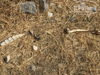 Рядом с отелем или через дорогу по горам ходят овцы и козы, один раз мы полезли на гору, 2 бедные овцы бегали от нас, ободранные какие-то, сложилось ощущение, что они дикие или заблудшие, потеряшки. У обочины видели высохший труп козы, видимо сбили на дороге, да и в горах косточки находили, фотки прикрепила, надеюсь хищных поедателей коз там не водится))