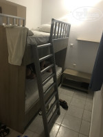 У нас в номере, 405, были 2 полуторки сдвинутые и 2-х ярусная кровать детям, прикроватные тумбочки, большая столешница, шифоньер с дверцами, маленький холодильник, сейфом не пользовались. Туалетная комната: душевая кабинка, лейку только не снять и некоторые части тела приходилось мыть так, что вся спина мокрая)) унитаз, раковина.