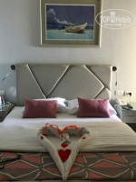 Небольшие, европейский дизайн, с довольно новой удобной мебелью, очень рационально использовано пространство, с балконами, большая часть которых выходит на море, вид - шикарный. Сантехника вся работала, кондиционер шумноват, но работал исправно. Очень приятные и уютные номера.Уборка каждый день, отдельное спасибо Хасану, который убирал наш номер, выделывал каждый день разные фигуры из полотенец, вырезал из ткани сердца и приносил фрукты в номер.