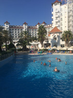 По питанию у меня вообще никаких претензий. Все вкусно и достаточно разнообразно. Особенно ужины! Там помимо еды из ресторана есть еще и мясо, рыба, курица, приготовленная на гриле на улице. Есть перекусы в баре у бассейна, классическое турецкое гезлеме с разными начинками (вкусно), мороженое. В баре у бассейна делали самые лучшие коктейли. Там вечером образовывались очереди.