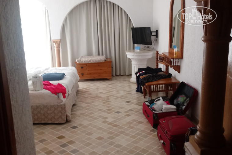 Фото номера в первый день приезда-присмотревшись можно увидеть,что полы не чистые,номерной фонд или давно не обновлялся или уже "заездили",мебель "дореволюционная".Фото муравьев и сантехники в известковом налете ,к сожалению, на другом носителе.