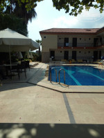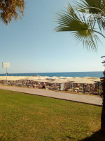 От отеля до пляжа минут 7-10 неспешным прогулочным шагом. Пляж галечный. Море замечательное! Вода чистая прозрачная, даже заплыв за буйки можно было видеть на дне камни и редко промелькнувших рыбок. А вид на горы просто не может оставить кого-то равнодушным.
