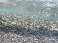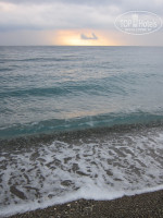 Погода в этом году в Турции была теплее, чем в прошлые годы. На воздухе было до 30, а в море - до 27. Штормов не было, и только один день был дождливым. Вход в море нормальный - в основном галька. Лежаков на пляже хватало всем желающим. В море не впадают никакие ручьи, а потому оно неразбавленное - почти как Красное в Египте...