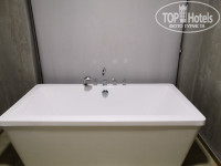 Бросается в глаза некий диссонанс - унитаз с подогревом, но кривое зеркало и не обработанные стены, словно их только начали делать. Огромная кровать. Шикарная ванна с возможностью смотреть в номер через стекло. Немаленький телевизор с одним русским каналом. Кондиционер работает на отлично + вентилятор. Балкон большой, но с видом на трансформаторную будку, которая постоянно гудит и железную дорогу, по которой постоянно ходят поезда и весело гудят во всеуслышанье.
