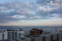 5. ПЛЯЖ. Пляж в 200, может ближе, метрах от отеля, по улице и под железной дорогой по переходу, близко и не напрягает. Лежаки и зонты платно 4-5 евро, мы не пользовались, полотенца из отеля стелили, можно и прикупить зонтик, 10 евро и без проблем. Пляж песок, точнее мелкая, очень мелкая галька. Есть на пляже бар, у кого «всё включено» можно на одного человека один напиток в день брать.