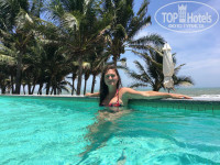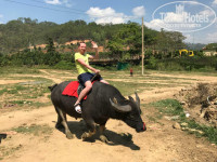 Отдыхали 10 дней. Сказать особо то и нечего. К отелю как таковому нет претензий - хорошая ухоженная территория, все новое, чисто везде, номера хорошие, твердая 4*. Но находится в такой глуши, что скучно стало даже нам, любителям пляжного отдыха. Вы скажете, что мол мы же знали куда ехали. Нет, изначально не было все так очевидно. В других странах и в такой удаленности двужуху можно найти. А тут мало постояльцев, никакого веселья, даже людей почти не видно на территории. Море мутное, постоянные волны, купаться получалось очень редко, часто висели запрещающие флаги. Также часто мусор плавал около берега. Вдоль улицы, на которой расположился отель, находятся только несколько кафе. Запах стоит в них конечно такой себе. Жарят все блюда как будто на одном и том же оборудовании (думаю, это так и есть). Самое хорошее отношение — в самом маленьком кафе, самое близкое к отелю. Там и бутылки от пива можно сдать за скидку на новое. Были мы в Муйне, и в Нячанге — людей много, а настроение лучше не становилось. Отдых нам в итоге запомнился только экскурсиями и рыбалкой на пираний и окуней. Покатались на буйволах, слонах и страусах, сходили в зоопарк, съехали по гоночной трассе (не помню как называется). Самое большое разочарование в итоге — море.