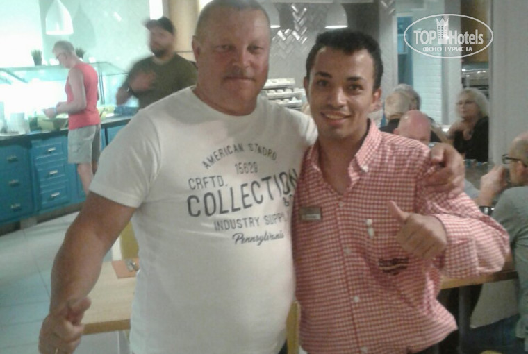 Основний ресторан не великий, закритий та затишний. Ми приходили на вечерю 18.30, бо потім для компанії місця не знайдеш. Хіба прийти через годину, хто має бажання повечеряти пізніше… Також є відкрита тераса з столами, де можно курити. Офіціанти мають свої столики і обслуговують дуже швидко. Кожний ранок подають свіжий фреш. Завжди багато м’ясних блюд (смажених, варених та гриль). Великий вибір холодних закусок та солодощів. Кожний день подають морепродукти. Їду завжди доносили і всім хватало. Ми дуже задоволені, за що дякуємо. Спиртні напитки нам сподобалися, нема на що нарікати. Пили «водку» - 40%, бренді – 30%, а були – два види рому, текіла, джин, віскі. Все місцевого виробництва.
