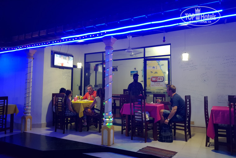 Питались в кафе на пляже и на улочке в 1км от отеля. От отеля едешь на тук туке или пешком. Водитель везет тебя туда где ему платят процент, приезжаешь с ним в кафе, с тебя еще 10% берут за обслуживание, а если своим ходом то не берут. Так что доезжайте до улицы просто с ним и ни говорите что вы в кафе. По оплате договариваться заранее надо, они очень накручивают цены, до этой улочки 50-100 рупий не больше давать надо. Есть еще приложение типа мапс ми, где можно заказать тук тук, там еще дешевле. Кафе оазис и sea shell дорогие и платят процент тук тукерам. Готовят там средне. Из всех мест , где были , очень вкусно и приемлемо по цене в Ocean Restoran. Этот ресторан рекомендую! Вкусно все что заказываешь, очень понравились все морепродукты, фреши обалденные. Фото ресторана прилагаю.