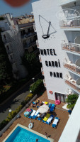 Номер оказался на 5-м (6-м нашем) этаже с видом на бассейн. С моей точки зрения, наилучший вариант. Шумная центральная улица и главный вход в отель с другой стороны, а у нас – тихая улочка, по которой кто-то проезжает раз в час днем, а ночью вообще никого. Вечером у бассейна проходят шоу: музыка, пение, пару раз танцевали фламенко. Можно не занимать места в баре, а слушать на балкончике. Что мы и делали, попивая купленное в магазине вино или каву. В 23-00 музыка выключается, и дальше вокруг тишина. Поскольку раньше мы спать все равно не укладывались, вечернюю анимацию за шум не считаю.