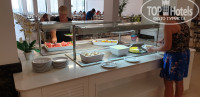Столовая.... другим словом это и не назвать. Это именно столовка, такая прям советская.... даже со своими очередями... за арбузами💪 На сайте указано, что завтрак в одном ресторане, ужин в другом... Нет! Все эти действия , как и обед, проходят в одной и той же столовке. Еда крайне скудная и однообразная. От слова совсем. Дня через 3 уже и не знаешь, что бы выбрать... фруктов мало. Сладости все одинаковые.
