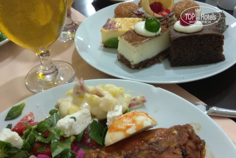 Бесплатная сауна в первой половине дня. Есть свой хамам. Правда мы ездили в другой, где больше процедур. Персонал вежливый. На кухне чисто. Хороший выбор сладостей, соусов, из фруктов апельсины, яблоки, арбуз и виноград иногда. Была рыба, кура, наггетсы и котлеты. Что вполне достаточно для мяса. Пекли оладушки, очень вкусные, особенно мне нравились с ореховым соусом. В общем я довольна кухней. Особенно учесть что тройка.