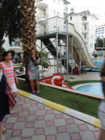 Есть детская зона отдыха, качели, лазелки и бассейн с горкой. Свой гид при отеле. Магазинчик меха и кожи при отеле. Вай фай работал отлично у ресепшн и немного у бассейна. В номере уже не брал. Мы были на 5 этаже. Кстати от этом. Небольшой минус, каждый день не по разу подниматься пешком, так как нет лифта вообще! Но так как мы молодые, то извлекли из этого +, фитнес))) А вот гостям в возрасте конечно будет тяжело. При бронировании лучше сразу делать пометку об этаже. Может повезет..... Немного о спальне. Матрац хороший, не продавлен, спать удобно. Подушки тоже пышные и мягкие. Сан узел чистый, правда не идеален) Было два балкончика в большой семейной спальне. Одна лоджия, где вечером можно посидеть а второй маленький, так... чтоб был))) Номер у нас был Семейный, две комнаты. Одна с большой кроватью, вторая поменьше с двумя односпальными кроватями. Нас было трое. В каждой комнате дверь. Так что супер) В номере прибирали. Перегорела лампочка, заменили. В общем особых претензий не было. Еще здорово что стены не картонные, и не слышно соседей, как в некоторых отелях.