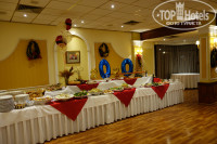Начало в 21.00 (обычный в 19.00). Заранее всех распределили по столам, у нас был с русскими туристами. На красиво сервированных столах присутствовали атрибуты праздника (нарядные колпачки, серпантин, хлопушки и т.д.). Можно было заказать шампанское, вино и воду. Мы брали бутылку белого сухого вина за 12 евро и бутылку воды 2.2 евро. Новогодний праздник был организован в двух залах отельного ресторана. В одном зале праздничный «шведский стол», в другом сервированные столы и культурная программа, которая состояла из живой музыки, нескольких незатейливых номеров (танцы, фокусы) и дискотеки под музыку 80-х. Атмосфера праздничная, было весело. Нам очень понравилось.