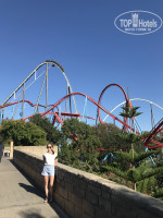 Три дня были в Порт Авентуре. От отеля на автобусе 30 минут. Первый день - Феррари парк, муж скатился с самой страшной горки, я не стала, очень страшно, для деток есть 5-6 аттракционов, младшего 2,5 года (90 см ростом) пустили даже на детские американские горки, восторг! Во второй день мы посетили сам парк аттракционов, народу тьма. Нам пришлось с мужем разделиться, Он катался в детской зоне на аттракционах, а я отстояла 1,5 часовую очередь на аттракцион Дракон с 8-ми мертвыми петлями ))) советую! Больше на взрослых Горках никто из нас не катался, очереди громадные, да и с детьми это крайне не удобно. Мы были в детской зоне и прокатились на всех детский аттракционах, с утра людей больше, очереди громадные, после обеда катались уже почти без очередей. Если честно, то ожидали большего... перекусить особо негде, один фастфуд, кстати, огромный плюс отеле в том, что если пропускаешь обед или ужин дают с собой ланчбоксы, приличные хорошие, с ними мы и ездили в парк. Ну и третий день - аквапарк Авентуры. Та же история, народу тьма! Вода в бассейнах очень освежающая, младший, который очень любит водные горки, из за освежающей воды отказывался скатываться с горок. Но потом вошёл во вкус и доставала я его из бассейна с синими губами. С мужем так же делились, либо он шёл со старшим на взрослые горки, а я с младшим в детской зоне, либо я шла со старшим, а он с младшим оставался. Так мы скатились со всех горок, кроме одной самой страшной. Если вы с детьми, то покататься вдоволь вам самим вряд ли удастся. А вот ради детей стоит сходить. На самые детские аттракционы и водные горки рост малыша должен быть больше 90 см, а на взрослые не экстремальные Рось ребёнка должен быть выше 120 см, нам как раз повезло, наши дети были точь-в-точь таким ростом. Были случаи, когда родители отстояв с ребёнком очередь 1,5 часа из не пускали скатиться только потому, что рост ребёнка был 119 см, и хоть на коленях стойте - не пропустят, всё за безопасность. Соседи по номеру ездили с ребёнком 86 см, он нигде не смог покататься, кроме малышковой зоны, ходил и плакал там, а у родителей сердце кровью обливалось, поэтому совсем с малышами посещать эти парки не стоит...