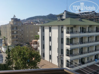 Поселили во 2-м корпусе на 5 этаже. Сам номер и вид из него мне не понравился – номер очень маленький (комната 12-14 кв.м.), вид из него прямо на соседний отель и его номера (буквально в 15-20 метрах), по вечерам до часу-двух ночи мешала спать громкая музыка и хоровое пение немцев, доносившиеся из кафе за сквером. Поэтому, сразу же на следующий день, я попросил на ресепшене заменить номер на другой. Но мест не было. Пришлось подождать еще день, но зато в итоге нам предложили 2-х комнатый "фэмили"- номер с видом на Крепость и видовую площадку на горе, где расположен знак "Я люблю Аланию". Оба номера немного обветшавшие какие-то, немного затрепанная уже мебель т диваны. Вроде чисто, но видно что старенькое все. Впрочем за номера и цена соотвествующая. Путевка сюда была гораздо дешевле, например, Лонисеры 3*, которая находилась еще дальше от моря