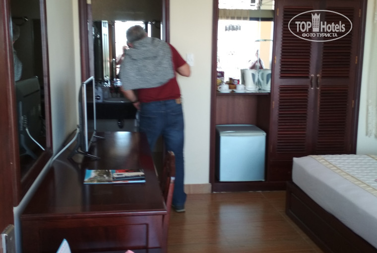 Отдыхали в этом отеле в феврале с мужем. заселили нас во второе здание - через дорогу от основного и от моря.Но это не минус ,а плюс.Вечером тишина,никаких тусовок не слышно.Через дорогу всегда поможет перейти сотрудник отеля,который весь день находится рядом с переходом.Номер стандартный, В номере есть чайник,фен.