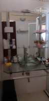 Итак номер. Мебель добротная,но местами требующая ремонта. В номере большущая кровать, плазма с одним русским каналом, шифоньер с полками и вешалками, две пары сланцев, чайник с минимальным набором пакетиков чая, кофе, сахара.