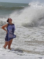 Пляж . Это конечно большой плюс отеля, пляж у отеля теперь есть! Волнорезы и привезенный песок сделали свое доброе дело. Всего два раза за наш отдых вешали черный флаг, дул сильный ветер. А так плавать в море комфортно, вода теплая 26-27 градусов, волны в основном умеренные, прыгать на них одно удовольствие. Несколько дней подряд был даже штиль, тогда море стало красивым, прозрачным и бирюзовым! Живности, кроме песчаных крабиков замечено не было. Лежаков много, места всегда всем хватало. Есть душ чтоб ополоснуться после моря, смыть песок и соль и тут же занырнуть в бассейн)))