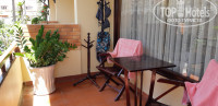 Балкон весь в зелени, очень уютный. Столик, пара раскладных кресел и маленькая вешалка с рожками по кругу. Думали поначалу натянуть на балконе веревку, но зацепить как оказалось не за что. Выставили вешалку из номера,к той, что на балконе, на них и сушили одежду. Что удивительно хватало. А так-как постоянно дул ветерок, белье сохло очень быстро.