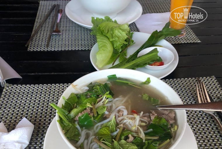 На обед и ужин ходили в близлежащие кафе и рестораны. Судить местную кухню могу только по себе, но мест, где действительно вкусно готовят, довольно мало. Еще будучи в Москве многие уверяли меня, что во Вьетнаме местный суп фо-бо готовят лучше, чем в Москве, буквально в любом кафе, даже в самой ужасной забегаловке. Ох как же они ошибались! Был испробован не один десяток фо-бо в разных местах и лишь в одном месте он был действительно божественный - это Modjo Bar & Restaurant неподалёку от отеля. В меню местная и европейская кухня. Заведение держат французы, цены почти наравне с московскими. В какой-то момент местная еда надоедает и тяга к привычной русскому человеку еде приведёт Вас именно сюда) Очень советую данный ресторан - Вкусно, качественно, приятная обстановка, и какой же вкусный ФО-БО))))))