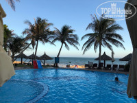 1) первая линия : главный корпус с бассейном и пляжом - территория небольшая, но ухоженная и зелёная. Бассейн хороший. Можно купаясь в басике, любоваться морем. Вышел из бассейна и побежал в море - в этом плане отелю ставлю 10 из 10, идеально) Сам пляж чистый. Говорят, что чистота пляжа зависит от сезона, по крайней мере в январе с этим повезло. По утрам большие отливы, днем вода прибывает. Волны большие, вдоволь накатаетесь и посмеётесь ) Мой Вам совет - ни в коем не надевайте очки или кепки в море , волны сразу унесут. Так я попрощалась со своими очками в первый же день отпуска) Единственный минус пляжа - большие волнорезы по бокам пляжа , огромные мешки с песком. Как я уже сказала, в море большие волны, в связи с этим волнорезы были установлены отелем в прошлом году. В целом они не привлекают особого внимания, но красивых фото на фоне пляжа у девочек не получится)