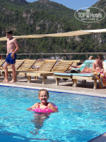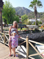 Отдыхали с мамой и дочкой 6 лет.О плюсах:Красивый большой номер вид на бухту потрясающий,море очень понравилось,брали экскурсию 5 бухт у Анжелики не пожалели на целый день,кормят.В бухтах везде разного цвета вода.Питание конечно на троечку ну и цена невелика,нет никакой детской развлекаловки я про взрослых молчу.А так в принципе все хорошо.Бармены хорошие,если не хамить как большинство "царей"приехавших по фартуне.Убирают каждый день нанесли полный номер шампуней гелей и т.д.Отель городского типа,территории нет,рядом мигрос и различные палатки а так же остановка.Мы ездили в Мармарис в крепость и на шоу поющих фантанов ,не далеко и стоит копейки.Да и горы вокруг это абсолютно другая история нежели Алания и Анталия.В ту сторону теперь и не хочется.Смотрите сами но критичного ничего не заметили,ребенку больше понравилось чем в пятерке Анталии.