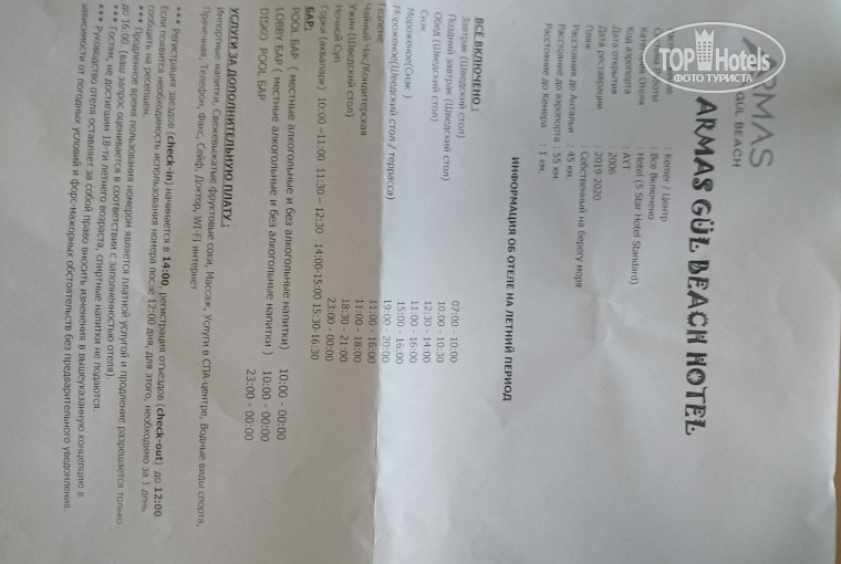 Это так, о чем наболело, теперь по делу. Заселение в 14.00 раньше вряд ли так как все занято. При заселении меряют температуру. По всей территории отеля стоят дезинфекторы, в ресторан просят входить в маске. Номера я так поняла за карантин все обновили. В корпусе где ресепшн на второй линии сделали косметический ремонт, поменяли кондиционеры. У нас по крайней мере был новый кондей и тв. Нас все устраивало, вид с балкона не волновал, так как там слишком жарко, максимум выскочить бросить полотенце сушиться. Возле корпуса у дороги живет куриное семейство, дорожка постоянно загажена. Еды достаточно, все вкусно, много фруктов (черешня, арбуз, дыня, апельсин, яблоко, сливы, алыча), мало турецких сладостей. Персонал хороший, не хамит, поможет чем сможет.На баре много всего. Море прекрасное, хотя мне показалось сильно ограждено буйками, если присмотреться то площадь не большая, как бассейн. Анимация вроде была, кому надо найдет, кому нет, мешать не будет. С вечерних программ турецкая ночь понравилась. Отель кстати теперь 5*.