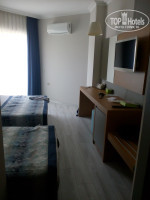 В номере очень скрипела дверь при выходе на балкон,просили ее смазать или еще что-нибудь сделать,но не сделали.Это минус.Остальные просьбы все были выполнены-вставить новые батарейки в пульт от кондиционера(ниже писали,что не работает кондиционер-это из-за батареек),налить жидк.мыла,дать доп.одеяла.Около раковины-жидк.мыло,в душе -гель+шампунь(2 в одном).Убирали кажд.день,претензий нет,оставляли доллары-лебедей не крутили))))В мини-баре-3 с газом воды по 0.25,3 без газа,3 пепси,3 фанты.Бар не пополняется без запроса.Вода в кажд.баре в доступности,остальное мы не пьем,поэтому нам это было неинтересно.Номер хороший,с ремонтом.Отель делится на 2 корпуса.Один-на перв.линии,там номера с ремонтом и весь движ там.Втор.корп.-через дорогу,там номера уставшие,как , в принципе, и лифт с холлом во втором корпусе.Нас поселили с видом на неработающую гостиницу,и это хорошо,т к если бы это был номер с видом на анимацию,то,сами понимаете,сна бы не было,хотя звук от дискотеки и нам мешал заснуть,благо в 00.15 наступала полная тишина.