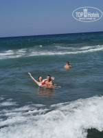Море не спокойное, песчаный заход только с правой стороны от волнореза. В других местах каменные плиты. Но пляж чистый, лежаков хватало и мы от души порезвились на волнах.