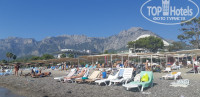 Пляж очень красивый вид, мы приехали 27 числа было чисто, потом приехало много украинцев, все стало в бычках и семечках, хотя мусорные бочки стоят везде. Вода лазурная. Плывешь в море, а вид у тебя море, горы и пальмы - я в восторге! Безумно красивая природа!