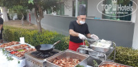 Поскольку отдыхали в период коронавируса, весь персонал в масках, везде стоят антисептики, у официантов всегда маска и пластиковая защита на голове! В этом плане молодцы.