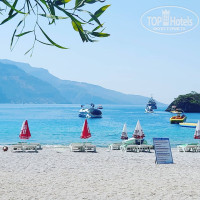 РАСПОЛОЖЕНИЕ: прекрасное...вышел и сразу на пляже - широком и просторном. У подножья горы, с набередной, усеянной магазинчиками, ресторанами, туристическими палатками и всякими развлекухами, Экскурсии на кораблях прямо рядом, никуда не надо ехать автобусом, до Голубой лагуны 1 км(нам повезло, вход был бесплатный в период нашего отдыха, но сходили всего один раз...полюбовались красотой воды и окружающей, окунулись, но предпочли наш пляж Бельджекиз).