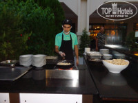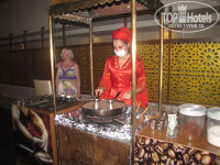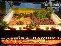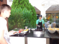 Завтраки скудные . Обеды у ужины хорошие. Давали рыбу дораду , серебристую форель на гриле , шашлык их курицы , индейка каждый день . Один раз давали роллы, креветки . пельмени Выбрать было из чего. Так же можно пообедать в ресторане на пляже . Там очень вкусные пончики , бельгийские вафли , гамбургеры с колбасками , айран . Есть еще гезлеме, крошка картошка,мороженое ,пироженки ,булочки с котлетой и т.д.