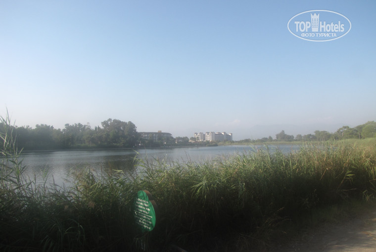 Территория очень красивая много зелени с бассейнов , отличный аквапарк как для малышей , так и для взрослых , горки на любой вкус. Рядом есть "Дрожащее озеро" там много уток . Гулять лучше вечером,часов в 16.00 там же есть базар и куча магазинчиков. Цены гораздо ниже чем в отели.