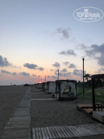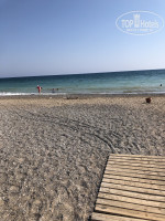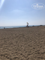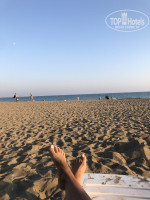 Пляж нам не очень понравился, да он огромный, но песок серый какой-то, при входе мелкая галька, иногда больно прям заходить. Напрягало, что нельзя шезлонг ближе к морю поставить, с ребенком очень неудобно. Шезлонги без матрасов.