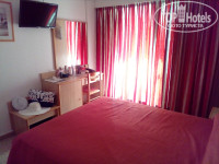 Слева от входа располагается шкаф-купе. Несколько полочек и штанга с вешалками. На одной дверке зеркало в полный рост. В центре номера большая двуспальная кровать, 2 тумбочки по бокам. Напротив туалетный столик, табурет и конечно зеркало. Слева от столика небольшая тумба для вещей. В номере есть телевизор, а холодильника, к сожалению, нет. В каждом номере есть балкон с видом на город, но если посмотреть вправо, то можно немного увидеть море)) на балконе столик и 2 пластиковых стула. Кондиционер работает, все очень хорошо!