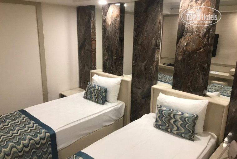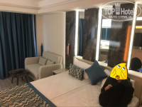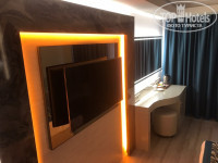 Неоспоримый плюс отеля - то, что он новенький. В номере (у нас был Family Superior) всё красиво, стильно, блестит, много зеркал. Большая душевая кабинка. Интерьер отеля радует глаз. Много видов освещения. Чайный уголок. Большой телевизор и больше 80 каналов - в том числе и украинские. К сожалению, наш балкон выходил на сторону с техническим оборудованием, поэтому практически нельзя было открыть балкон - очень шумно, а ближе к часам работы ресторана ещё и дым от вытяжек. В принципе на рецепции нам сказали, что готовы поменять номер на следующий день, возможностью этой не воспользовались, так как не захотели снова собираться и переезжать. Поэтому какой-то большой претензии к отелю нет. Вам, другим туристам, на заметку.