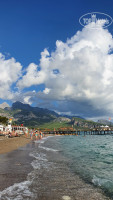 три пирса один с платными кабинками. вход есть с песком. самое классное, что оно там не штормит. ни разу не видели. видимо из за расположения. прыгать с пирсов нельзя, но есть очень хочется, то место можно найти. там есть камни, где то прям много. Мы уплывали до дальних буйков и на них болтались, смотря на горы)) пейзаж конечно там, ни с какой аланьей, не сравнится)) Еще один момент солнце заходит за гору уже в 17 часов. Поэтому выходить может быть прохладно.