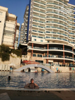 Отдыхала с подругой в этом отеле с 6 по 19 сентября 2020 года. Т. к. были ограничения из-за пандемии, пришлось прилетать в аэро Анталии. От аэро 3 часа езды до отеля! За это жирный минус((( Отель состоит из 11 этажей, начинается на уровне 3 этажа. Отель городской, территории нет! Зато очень близко ко всем движам. 4 км до центра Аланьи, до фуникулера и пляжа Клеопатры. На автобусе 1 и 101 добраться можно за 20 минут (цена 50 руб. в один конец).
