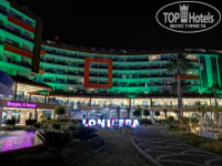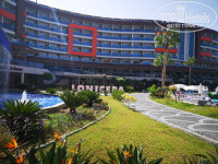Доброе время суток всем. В отель Лонисера мы попали случайно. Родственники супруга купили туда тур и мы подстроились под них. Конечно, очень далеко от аэропорта, но в октябре это того стоило так как нам сказали что в Алании теплее чем в Анталье. Когда мы наконец то зашли в свой номер, то он нам очень понравился. Мебель все современная, свежая, правда ни тапок, ни халата в номере не было. В холодильнике стояла минералка газированная и вода. Никаких сладких напитков и пива. Чайник есть, каждый день подкладывают пакетики кофе и чая. Скромненько как то для 5*.. Питание тоже на 4", все скромно по сравнению с другими отелями. И быстро все надоело. Вот из за питания я и понизила звездность отеля. Ну а насчёт территории-все шикарно, огромная, с аквапарком огромным, с зоопарком, с 6 бассейнами. Море отличное, с песком и плавным заходом. Если честно, то можно вернуться туда еще раз. Так что рекомендую.