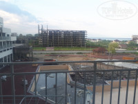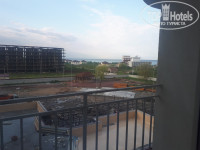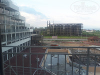 Номера с видом на море на тот момент были только с таким видом (фото с недостороенным басиком). Вид на горы, думаю, гораздо лучше, но там больше слышно рядом стоящие кафе, музыка громкая вечером. В нашем номере с видом на море не было слышно музыки. Часто отключали свет и воду, но это во всей Абхазии обычное дело, и если ночью воду отключили, будьте готовы с утра мыться в холодной воде. У нас был номер 1комн 2хмест стандарт твин(это означает двухместная кровать,выбирайте внимательнее). Выдают карточки, чтобы зайти в номер, как заходишь слева система включения электричества в номере: вставляешь карточку и можно включать все. Номер маленький, места свободного немного. Освещение-лампы на потолке и 2 светильника на стенах. Работает все. Есть холодильник, телевизор с 30 русскими каналами, зеркало, тумбочки, сушилка, стулья, несколько вешалок и стенка чтобы повесить одежду на крючки. Кровать на удивление очень удобная и подушки тоже.