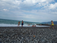 За территорией: грязь и деревня. Везде мусор, улицы не подметаются, может это для них норма, я привыкла к чистоте в своем городе. Есть выход другой, ведущий на пляж, там сразу магазин слизанная пятерочка, можно купить по минимому продукты, но дороговато. Там же кафешка Ora, дорого там кушать, советую кафешку "Абешла"(прикрепила фото 4 блюд! это если идти по центр улице вперед до гранд отеля абхазия, слева будет это кафе, вот там вкусно и не так дорого, советую грибной салат, и кто любит по-острее, попросите к чему нибудь соус ткемали, отвал бошки, и купите себе домой, они продают). Есть еще столовая справа от отеля, она без названия, там немного по-дешевле, но очереди большие. Идти на пляж через мусорку и магазины, дорога обычная необлагороженная(фото). Пляж(фото), можно лежать на лежаках и с зонтами, для этого надо предъявить карточку отеля. Их ограниченное количество, успеть надо. Плохо следят за лежаками, не забирают если люди ушли, обычно меньше людей после 15:00 на пляже. Коралки обязательно!!! Каменистый пляж. Они продаются на улицах. Рыб нет, только мальки. Собаки везде, но это наверно норма для них. Ходят по пляжу предлагают всякие снеки - не берите. На пляже предлагают кататься на бананах, ватрушка, гидриках, покатайтесь, а также морские прогулки на теплоходе.