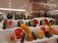 В этом смысле отель довольно странный - десяток разных корпусов. Во всех отелях есть номера более удачные и менее, но тут это усугубляется разными корпусами. С корпусом 5* понятно - новое огромное шикарное здание, хотя и там есть неудачные номера.. А с 4* сложнее. Корпуса A, B, C - сравнительно новые многоэтажные. Корпус D - старенький трёхэтажный, зато ближе всех к пляжу и со своим типа двориком. Е - тоже близко к пляжу, но небольшой. Самые бестолковые - четыре здания корпуса F , особенно номера с окнами в проход между зданиями. Реновацию старых корпусов конечно сделали, но вентиляцию в санузле похоже не осилили. В корпусе D её заменяет дырка на улицу. Как в других номерах не знаю, у нас какая-то вентиляционная решётка была приделана прямо в номере, явно тяп-ляп. Да и балкончик у нас был - одно название. Но в остальном претензий особо нет. Большая территория, хорошее питание и обслуживание, большой собственный песчаный пляж с пологим заходом. Лежаков конечно маловато на такое количество отдыхающих. Зато есть собственный аквапарк, днём на его территории раздавали мороженое, фастфуд и фрукты. Интернет доступен практически везде, даже на пляже, но не всегда работал даже при наличии сигнала. В номерах вроде получше.