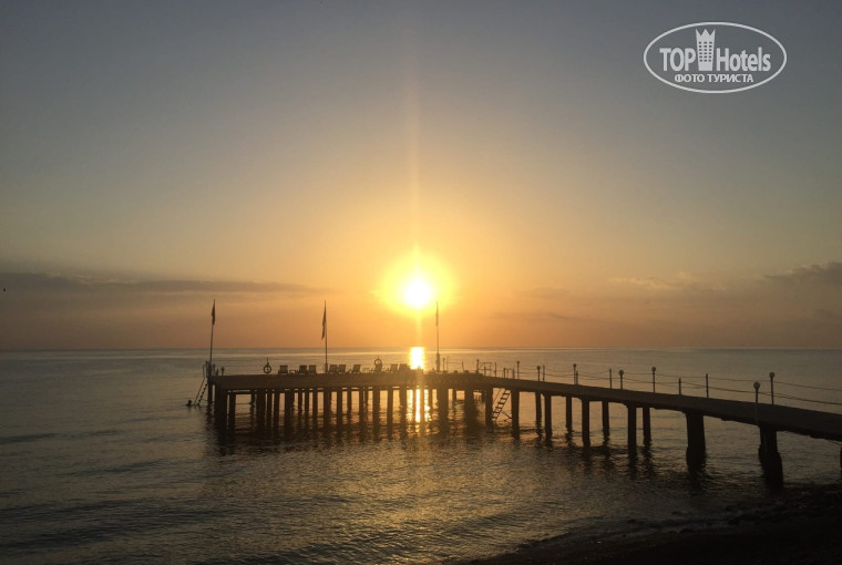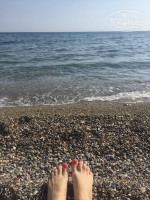 Пляж. Нужно перейти дорогу и пройти немного вправо, потом через какой-то кэмпинг. В целом идти недалеко. Пляж очень небольшой, лежаков впритык, галька мелкого, среднего и крупного размера (уже в воде) – как и везде в Бельдиби, это нужно учитывать. От отеля есть специальный мостик для удобного входа в воду, это большой плюс. Но я все равно рекомендовала бы надевать специальные тапочки. Зато водичка – ммм, просто волшебная! Чистая, прозрачная.