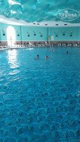 На территории есть отличный крытый спа комплекс с двумя бассейными для взрослых и одним маленьким для детей. Место всегда хватало всем. Что хочу из минусов отметить , что вода не всегда была тёплой, каждый день она была разной температуры, то горячей, то прохладной, не знаю с чем это связано. Также переход из помещения бассейна в парилки не отопливался и приходилось идти по сквозняку.